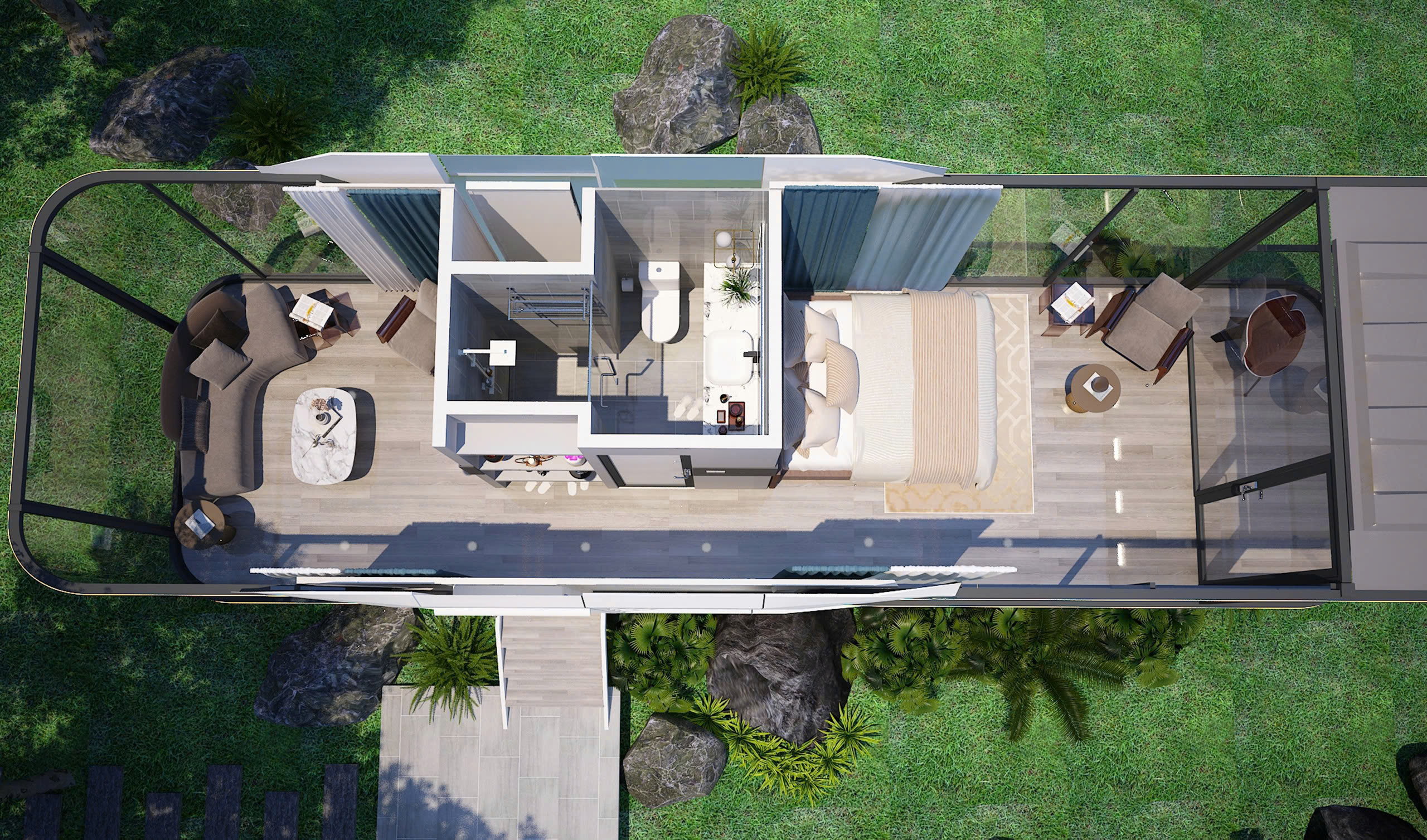 C2 – 1 ngủ, 1 nhà vệ sinh, 1 ban công, phong cách thiết kế cổ điển nhưng cũng mang sức hút, độc đáo riêng. Cửa nhà vệ sinh được thiết kế kín đáo riêng biệt, không gian nội thất rộng rãi 28m2 và sử dụng toàn bộ hệ thống thông minh, tự động mang đến không gian hiện tại và khoa học.